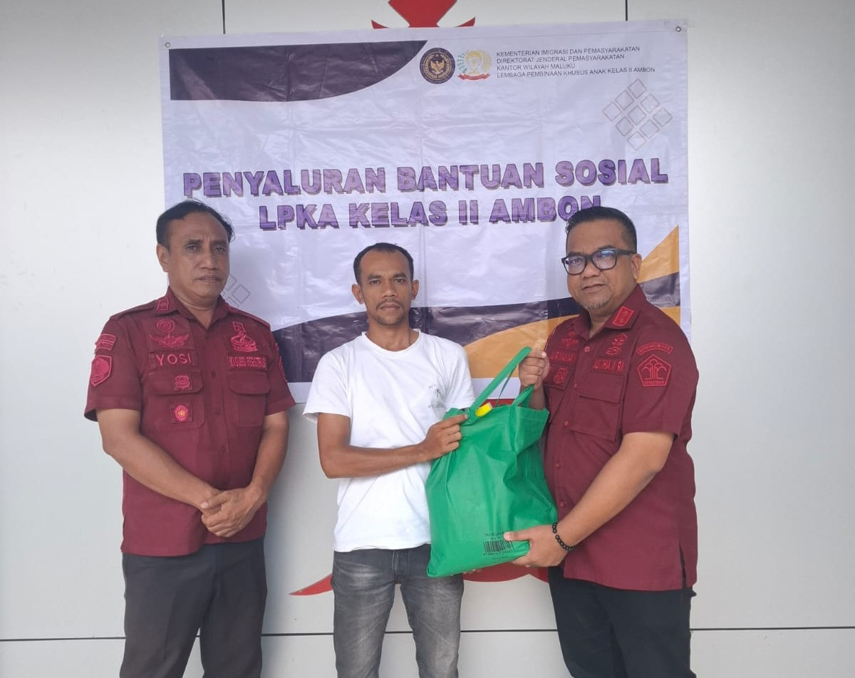 Kepala LPKA Ambon, Kurniawan Wawondos, secara langsung menyerahkan bantuan berupa 2 liter minyak goreng, 5 kilogram beras, 2 kilogram gula pasir, dan daun teh kepada salah satu Pegawai Pemerintah Non Pegawai Negeri (PPNPN) LPKA Ambon, Aziz. Penyerahan ini juga turut disaksikan oleh Kepala Seksi Registrasi, Yosias Nirahua.
