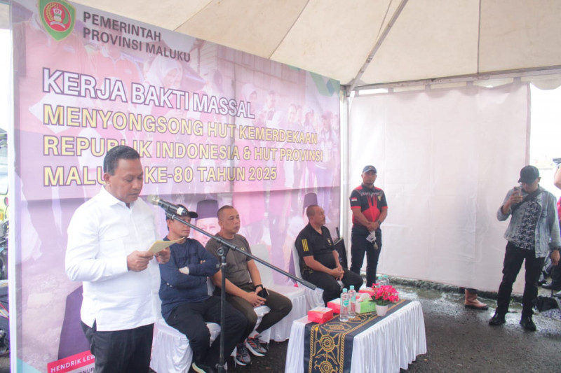 “ Jadi dalam rangka memperingati HUT RI dan HUT Provinsi Maluku ke-80 tahun 2025 kali ini, sebagai Wakil Gubernur saya mengajak seluruh ASN/ Non ASN dan TNI-Polri untuk turut dalam kerja bhakti massal di Lokasi Pasar Batu Merah dan Pasar Mardika”.