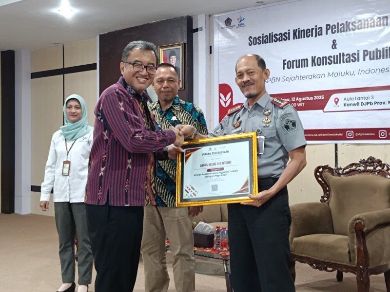 Yang mana, penghargaan bergengsi ini diserahkan langsung oleh Kepala Kantor Wilayah Direktorat Jenderal Perbendaharaan (DJPB) Provinsi Maluku, Anang Rohmawan, dalam kegiatan Sosialisasi Kinerja Pelaksanaan Anggaran dan Forum Konsultasi Publik yang digelar di Aula Lantai 3 Kanwil DJPB Maluku.