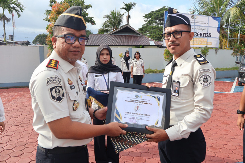 Ambon,CM- Lembaga Pembinaan Khusus Anak (LPKA) Kelas II Ambon menyematkan kenaikan pangkat kepada 27 petugas angkatan 2017 dari Pengatur Muda Tingkat I menjadi Pengatur, serta memberikan penghargaan pegawai teladan kepada satu pegawai, Kamis (16/04/26). Kegiatan yang berlangsung di lingkungan LPKA Ambon ini menjadi bentuk apresiasi atas dedikasi, loyalitas, dan kinerja para pegawai dalam menjalankan tugas pembinaan terhadap anak binaan. Momentum tersebut juga diharapkan mampu memacu semangat seluruh jajaran untuk terus meningkatkan profesionalisme dan integritas.