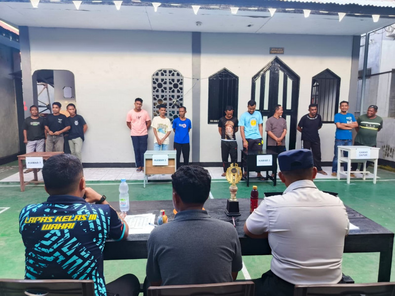 Wahai,CM- Semarak peringatan Hari Bakti Pemasyarakatan (HBP) ke-62 Tahun 2026 di Lembaga Pemasyarakatan (Lapas) Kelas III Wahai semakin terasa. Dalam rangkaian Pekan Olahraga, Seni, Intelektual, dan Kesadaran Berbangsa dan Bernegara (Porsenikab), Lapas Wahai menggelar lomba cerdas cermat bagi Warga Binaan, Rabu (22/4/26)