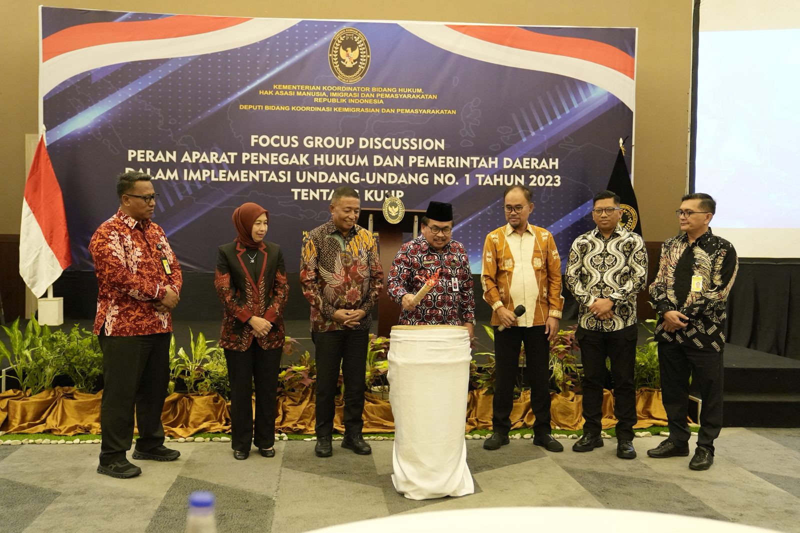 “Kami berterima kasih atas kunjungan tim dari Kemenko ini. Kami mendukung penuh pelaksanaan Focus Group Discussion Peran Aparat Penegak Hukum dan Pemerintah Daerah Dalam Implementasi Undang-undang No.1 Tahun 2023 Tentang Kitab Undang-undang Hukum Pidana (KUHP) demi terwujudnya penegakan hukum yang adil dan beradab dan sebagai sarana untuk meningkatkan kompetensi dan profesionalisme para aparat penegak hukum dalam menghadapi tantangan dan dinamika penegakan hukum yang terus berkembang,” ungkap Ricky.