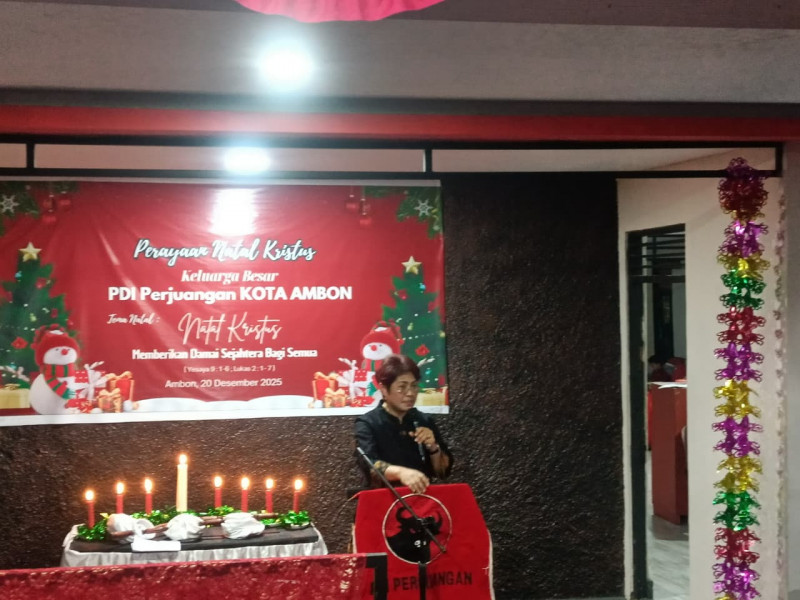 Ambon, CM – Dewan Pimpinan Cabang (DPC) PDI Perjuangan Kota Ambon menggelar Perayaan Natal Keluarga Besar PDI Perjuangan Kota Ambon di Sekretariat DPC PDI Perjuangan Kota Ambon, Sabtu (20/12/2025). Kegiatan ini berlangsung khidmat dan penuh nuansa kekeluargaan, sekaligus menjadi momentum refleksi perjuangan dan penguatan nilai politik kerakyatan.