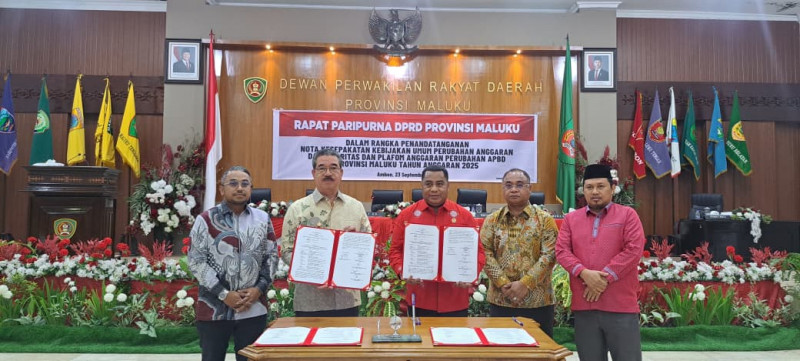 Penandatanganan ini disaksikan Wakil Ketua DPRD Fauzan Rahawarin, John Lewerissa, Azis Sangkala, jajaran anggota DPRD Maluku, perwakilan Forkopimda, serta seluruh pimpinan OPD lingkup Pemprov Maluku.